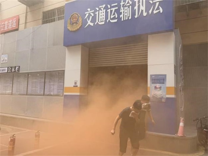 应急疏散演练环节以“大队二楼楼梯间突发火情,浓烟扩散”为模拟场景,演练信号发出后,各楼层引导员迅速到位,组织参训人员用湿毛巾捂住口鼻、弯腰低姿,沿指定消防通道快速向一楼安全区域疏散;疏散过程中,参训人员严格遵守“不拥挤、不慌乱、有序撤离”原则,全程仅用3分20秒便完成80余人的安全疏散,疏散流程规范、用时可控,充分检验了应急预案的可行性与队伍的协同配合能力。