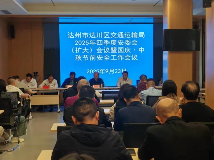 9 月 23 日,达川区交运局组织召开四季度安委会扩大会议暨国庆中秋节前安全工作会议,专题传达学习各级安全生产重要指示精神。会议明确要以 “更高标准、更严要求、更实举措” 落实假期交通保障任务,严格执行 “三管三必须” 工作要求,成立 8 个专项督查组,深入运输企业、道路一线开展督导检查,层层压实安全责任,确保各项措施落地见效。